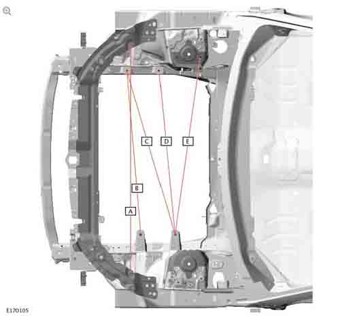 Контрольные кузовные размеры из заводского руководства по ремонту кузова LAND ROVER Discovery Sport L550 2014-2019--, в том числе размеры проемов кузова. Дополнительно приведены сведения о допустимых зазорах кузовных панелей.