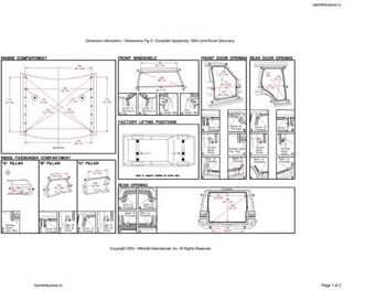 - Геометрические размеры кузова LAND ROVER Discovery 1 1989-1998, как проекционные, так и непосредственного измерения, в том числе диагональные размеры проемов кузова и контрольные точки для восстановления геометрии.