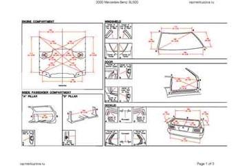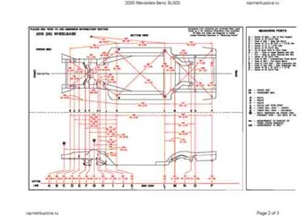 - Геометрические размеры кузова MERCEDES-BENZ SL-Klasse (R129) 1989-2000, как проекционные, так и непосредственного измерения, в том числе диагональные размеры проемов кузова и контрольные точки для восстановления геометрии кузова.