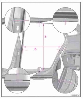 - Из заводского руководства по ремонту кузова SKODA Kodiaq GT China (0Z8, 0Z6) 2018-2021-2024, в том числе размеры проемов. Дополнительно приведены величины допустимых зазоров кузовных панелей. Производитель предупреждает: "Все размеры используются только для проверки; точные размеры задаются стапелем." Обратите внимание на миниатюры - изготовитель предоставил не очень полные данные по размерам.