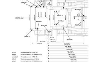 - Проекционные размеры с привязкой к стапелю. Дополнительно приведены цветные фотографии мест расположения контрольных точек на реальном автомобиле.