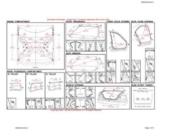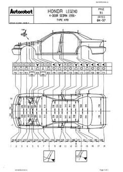 - Геометрические размеры кузова Acura 3.5 RL для автомобилей североамериканского рынка, как проекционные, так и непосредственного измерения, в том числе диагональные размеры проемов кузова и контрольные точки для восстановления геометрии кузова.