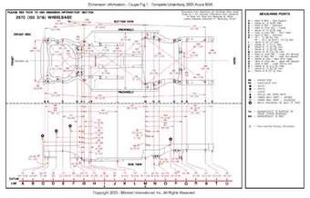 - Геометрические размеры кузова ACURA RSX 2002-2006 для автомобилей североамериканского рынка, как проекционные, так и непосредственного измерения, в том числе диагональные размеры проемов кузова и контрольные точки для восстановления геометрии кузова.