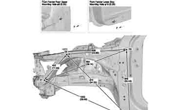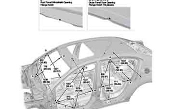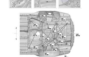 Контрольные кузовные размеры ACURA RLX 2013-2017-2020 из официального руководства по ремонту кузова. Содержат размеры верхней и нижней части кузова, в том числе размеры моторного отсека, диагональные размеры проемов кузова, размеры подрамников и контрольные точки для восстановления геометрии кузова. Даны значения допустимых зазоров кузовных панелей.