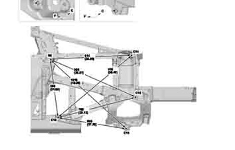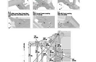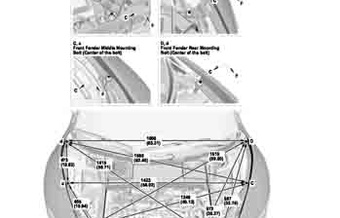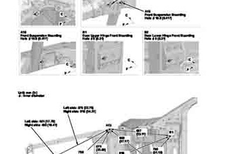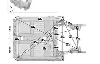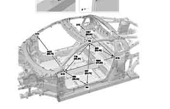 Контрольные кузовные размеры ACURA NSX 2016-2022 из официального руководства по ремонту кузова. Содержат размеры верхней и нижней части кузова, в том числе размеры моторного отсека, диагональные размеры проемов кузова, размеры подрамников и контрольные точки для восстановления геометрии кузова. Даны значения допустимых зазоров кузовных панелей.
