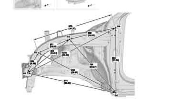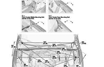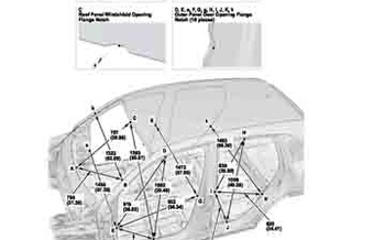 Контрольные кузовные размеры HONDA HR-V 2022-- из официального руководства по ремонту кузова. Содержат размеры верхней и нижней части кузова, в том числе размеры моторного отсека, диагональные размеры проемов кузова, размеры подрамников и контрольные точки для восстановления геометрии кузова. Даны значения допустимых зазоров кузовных панелей.