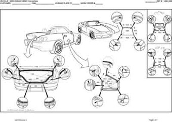 - Геометрические размеры кузова HONDA S2000 (AP2) 2003-2009 как проекционные, так и непосредственного измерения, в том числе диагональные размеры проемов кузова и контрольные точки для восстановления геометрии кузова.