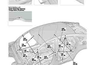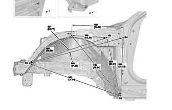 - Геометрические размеры кузова HONDA Accord X Hybrid (CV) 2017-2023, как проекционные, так и непосредственного измерения, в том числе диагональные размеры проемов кузова и контрольные точки для восстановления геометрии кузова.
