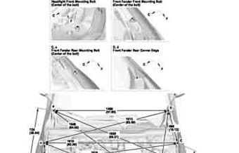 Контрольные кузовные размеры HONDA Accord X Hybrid (CV) 2017-2023 из официального руководства по ремонту кузова. Содержат размеры верхней и нижней части кузова, в том числе размеры моторного отсека, диагональные размеры проемов кузова, размеры подрамников и контрольные точки для восстановления геометрии кузова. Даны значения допустимых зазоров кузовных панелей.