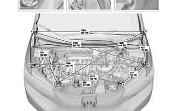 Контрольные кузовные размеры HONDA Fit 2013-2020 из официального руководства по ремонту кузова. Содержат размеры верхней и нижней части кузова, в том числе размеры моторного отсека, диагональные размеры проемов кузова, размеры подрамников и контрольные точки для восстановления геометрии кузова. Даны значения допустимых зазоров кузовных панелей.