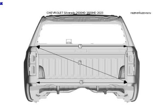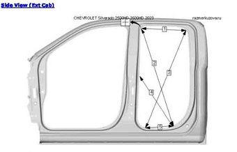 - Геометрические размеры кузова CHEVROLET Silverado 2500HD 3500HD 2019-- для автомобилей североамериканского рынка, как проекционные, так и непосредственного измерения, в том числе диагональные размеры проемов кузова и контрольные точки для восстановления геометрии кузова.