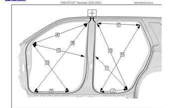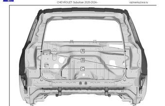 Контрольные кузовные размеры из официального руководства по ремонту кузова CHEVROLET Suburban 2020-2024--, в том числе диагональные размеры проемов кузова. Обратите внимание: информация довольно скудна. В галерее представлены ВСЕ имеющиеся чертежи.