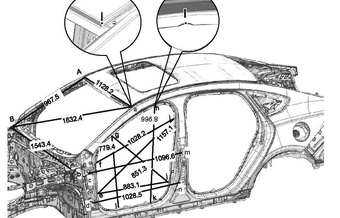 Контрольные размеры кузова для автомобилей BYD Qin Plus DM-i 2018-2024 из заводского руководства по ремонту кузова, в том числе размеры проемов кузова. Внимание! Пояснения к чертежам на китайском языке.