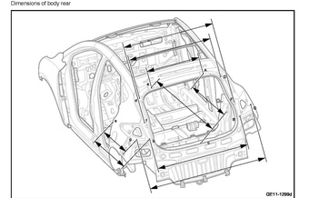 Контрольные размеры кузова для автомобилей GEELY Geometry C 2020-2024 из заводского руководства по ремонту кузова, в том числе размеры проемов кузова. Дополнительно приведены сведения о допустимых зазорах кузовных панелей.