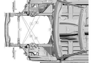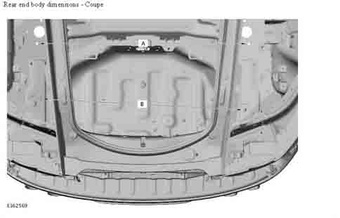 Контрольные кузовные размеры JAGUAR F-Type (X152) 2013-2017-2019-2024 из официального руководства по ремонту кузова. В том числе диагональные размеры проемов кузова и контрольные точки для восстановления геометрии кузова. Дополнительно приведены допустимые значения зазоров кузовных панелей.