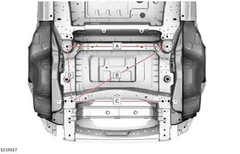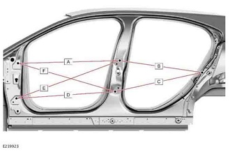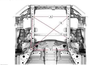Контрольные кузовные размеры JAGUAR I-Pace (X590) 2018-2024 из официального руководства по ремонту кузова. В том числе диагональные размеры проемов кузова и контрольные точки для восстановления геометрии кузова. Дополнительно приведены допустимые значения зазоров кузовных панелей.