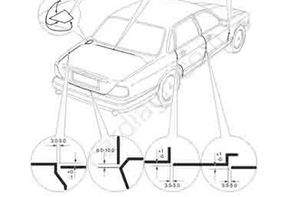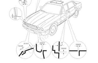 Контрольные кузовные размеры JAGUAR XJ (X308) 1997-2003 из официального руководства по ремонту кузова. В том числе диагональные размеры проемов кузова и контрольные точки для восстановления геометрии кузова. Дополнительно приведены допустимые значения зазоров кузовных панелей.