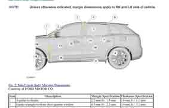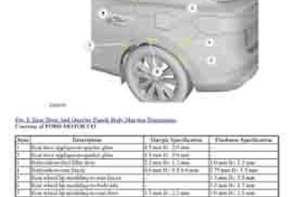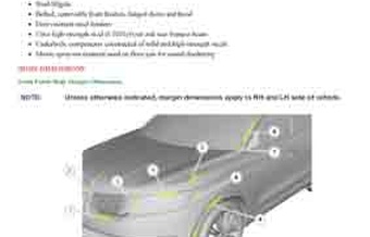 Контрольные кузовные размеры LINCOLN Nautilus 2018-2023 из официального руководства по ремонту кузова. В том числе диагональные размеры проемов кузова и контрольные точки для восстановления геометрии кузова. Дополнительно приведены допустимые значения зазоров кузовных панелей.