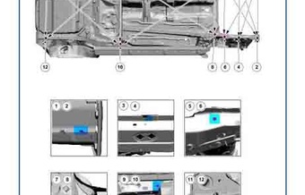 Контрольные кузовные размеры FORD Puma 2019-2024 из официального руководства по ремонту кузова. В том числе диагональные размеры проемов кузова и контрольные точки для восстановления геометрии кузова. Обратите внимание на миниатюры - изготовитель предоставил не очень полные данные по размерам.