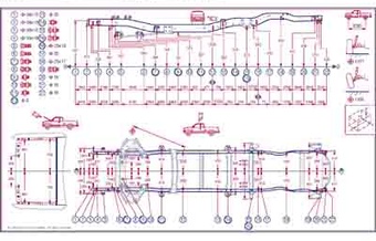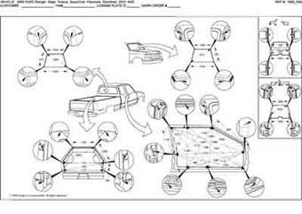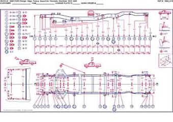 Контрольные кузовные размеры FORD Ranger 1998-2003-2006, как проекционные, так и непосредственного измерения, в том числе диагональные размеры проемов кузова и контрольные точки для восстановления геометрии кузова.