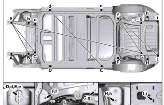 Контрольные кузовные размеры из официального руководства по ремонту кузова BMW iX3 (NA5) 2025--. Дополнительно приведены величины зазоров кузовных панелей. Пояснения к чертежам автоматически переведены на русский язык. Обратите внимание: информация довольно скудна. В галерее представлены ВСЕ имеющиеся чертежи. Производитель предупреждает: "Все размеры используются только для проверки; точные размеры задаются стапелем."