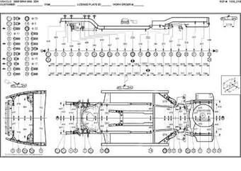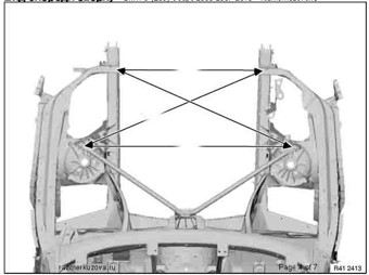 Контрольные кузовные размеры из официального руководства по ремонту кузова BMW 6 (E63) Coupe 2003-2007-2010. Дополнительно приведены величины зазоров кузовных панелей. Пояснения к чертежам автоматически переведены на русский язык. Обратите внимание: информация довольно скудна. Производитель предупреждает: "Все размеры используются только для проверки; точные размеры задаются стапелем."