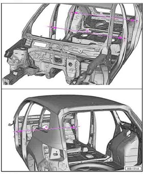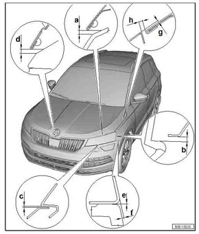 - Из заводского руководства по ремонту кузова SKODA Karoq (NU7) EU 2017-2026, в том числе размеры проемов. Дополнительно приведены величины допустимых зазоров кузовных панелей. Производитель предупреждает: "Все размеры используются только для проверки; точные размеры задаются стапелем." Обратите внимание на миниатюры - изготовитель предоставил не очень полные данные по размерам.