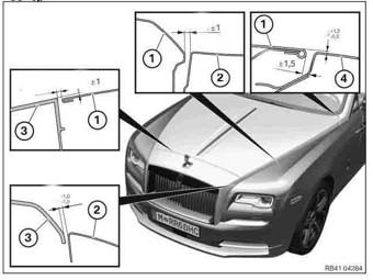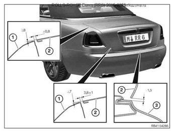 Контрольные кузовные размеры из официального руководства по ремонту кузова ROLLS-ROYCE Dawn (RR6) 2015-2023. Дополнительно приведены величины зазоров кузовных панелей. Пояснения к чертежам автоматически переведены на русский язык.