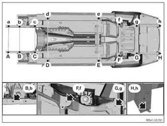 Контрольные кузовные размеры из официального руководства по ремонту кузова ROLLS-ROYCE Phantom VIII (RR11) 2017-2027. Дополнительно приведены величины зазоров кузовных панелей. Пояснения к чертежам автоматически переведены на русский язык.
