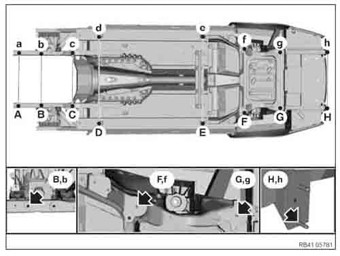 Контрольные кузовные размеры из официального руководства по ремонту кузова ROLLS-ROYCE Phantom VIII Long (RR12) 2017-2027. Дополнительно приведены величины зазоров кузовных панелей. Пояснения к чертежам автоматически переведены на русский язык.