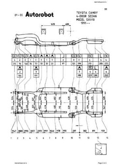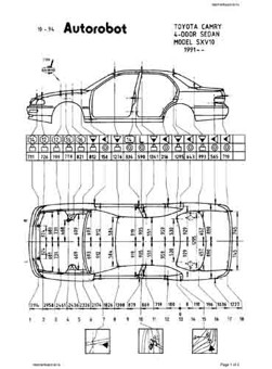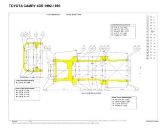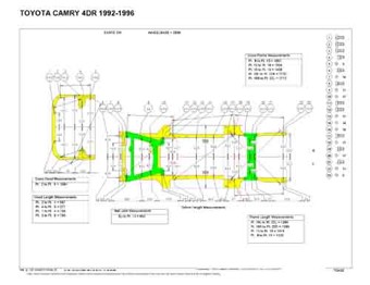 -Геометрические размеры автомобилей TOYOTA Camry (XV10) 1992-1996, как проекционные, так и непосредственного измерения, в том числе диагональные размеры проемов кузова ТОЙОТА Камри и контрольные точки для восстановления геометрии.
