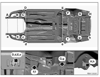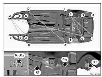 - Геометрические размеры кузова BMW 5 (G30) 2017-2022, как проекционные, так и непосредственного измерения, в том числе диагональные размеры проемов кузова и контрольные точки для восстановления геометрии кузова.