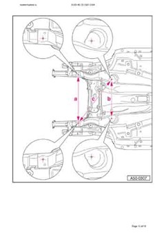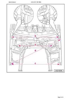 - Геометрические размеры, как проекционные, так и непосредственного измерения, в том числе диагональные размеры проемов кузова и контрольные точки для восстановления геометрии кузова AUDI A6.