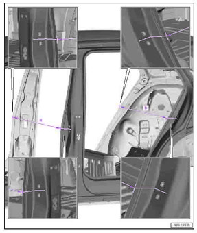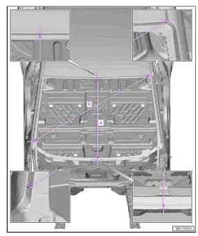 - Из заводского руководства по ремонту кузова AUDI Q4 e-tron (F4B), Sportback e-tron (F4N) 2021-2024, в том числе размеры проемов. Производитель предупреждает: "Все размеры используются только для проверки; точные размеры задаются стапелем." Обратите внимание на миниатюры - изготовитель предоставил не очень полные данные по размерам.