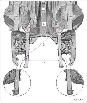 - Геометрические размеры кузова, как проекционные, так и непосредственного измерения, контрольные точки для восстановления геометрии кузова.