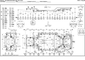 - Размеры кузова MERCEDES-BENZ C W202, как проекционные, так и непосредственного измерения, в том числе диагональные размеры проемов кузова.