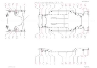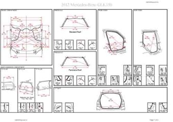 Контрольные кузовные размеры MERCEDES-BENZ GLK-Klasse (X204) 2008-2012-2015 , как проекционные, так и непосредственного измерения, в том числе диагональные размеры проемов кузова и контрольные точки для восстановления геометрии кузова.