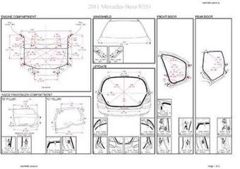 - Геометрические размеры кузова MERCEDES-BENZ R-Klasse (W251) 2005-2007-2010-2017, как проекционные, так и непосредственного измерения, в том числе диагональные размеры проемов кузова и контрольные точки для восстановления геометрии кузова.
