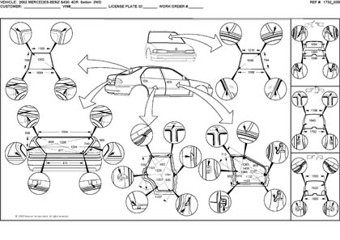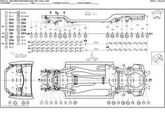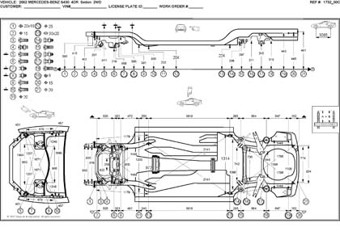 - Размеры кузова, как проекционные, так и непосредственного измерения, в том числе диагональные размеры проемов кузова.