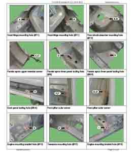 Контрольные размеры кузова для автомобилей Хёнде Соната седьмого поколения из заводского руководства по ремонту кузова HYUNDAI Sonata VII (LF) 2014-2019, в том числе размеры проемов кузова. Дополнительно приведены сведения о допустимых зазорах кузовных панелей.