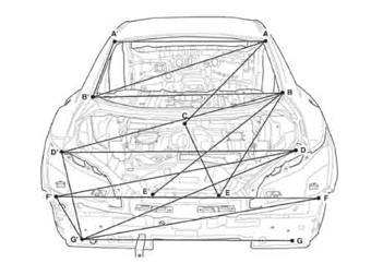 Контрольные размеры кузова для автомобилей HYUNDAI Genesis Coupe (BK) 2012-2016 из заводского руководства по ремонту кузова, в том числе размеры проемов кузова.