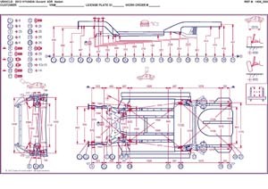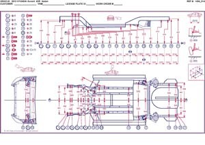 - Геометрические размеры кузова HYUNDAI Accent IV USA 2010-2017 для автомобилей североамериканского рынка, как проекционные, так и непосредственного измерения, в том числе диагональные размеры проемов кузова и контрольные точки для восстановления геометрии кузова.