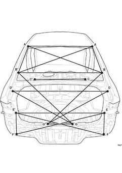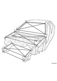 - Из заводского руководства по ремонту кузова Body Repair Manual, в том числе диагональные размеры проемов кузова и контрольные точки для восстановления геометрии.