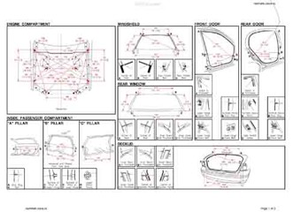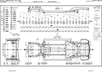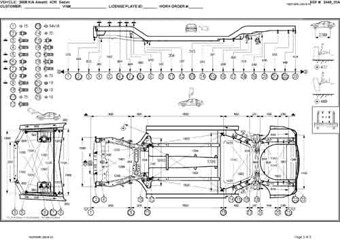 - Геометрические размеры кузова KIA Amanti (GH) 2006–2010, как проекционные, так и непосредственного измерения, в том числе диагональные размеры проемов кузова и контрольные точки для восстановления геометрии кузова.