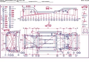 Контрольные кузовные размеры MITSUBISHI Lancer X (CX#, CY#) 2007-2017: