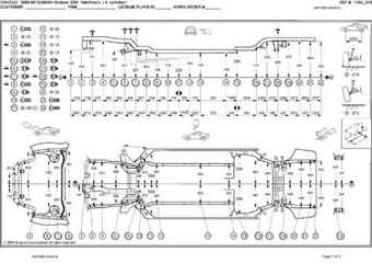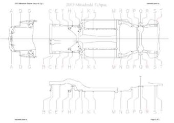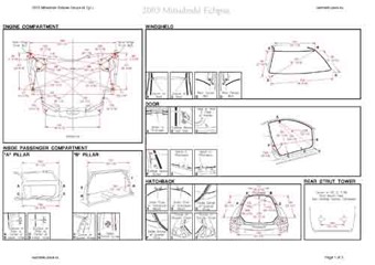 - Геометрические размеры кузова MITSUBISHI Eclipse 1999-2005, как проекционные, так и непосредственного измерения, в том числе диагональные размеры проемов кузова и контрольные точки для восстановления геометрии кузова.