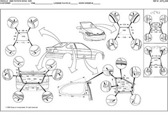 -Геометрические размеры, как проекционные, так и непосредственного измерения, в том числе диагональные размеры проемов кузова и контрольные точки для восстановления геометрии.