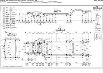 -Геометрические размеры для автомобилей TOYOTA Tacoma (N100) 1995–2004, как проекционные, так и непосредственного измерения, в том числе диагональные размеры проемов кузова и контрольные точки для восстановления геометрии. Представлены данные для моделей с однорядной, полуторной и двухрядной кабинами, с задним и полным приводом, с коротким и длинным кузовом.