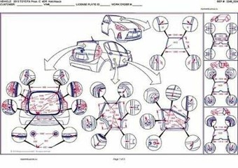 -Геометрические размеры автомобилей TOYOTA Prius C 2012-2014 североамериканского рынка, как проекционные, так и непосредственного измерения, в том числе диагональные размеры проемов кузова ТОЙОТА Приус и контрольные точки для восстановления геометрии.