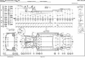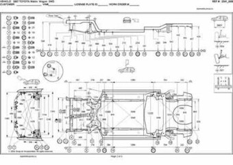 -Геометрические размеры автомобилей TOYOTA Matrix (E130) 2002–2008, как проекционные, так и непосредственного измерения, в том числе диагональные размеры проемов кузова ТОЙОТА Матрикс и контрольные точки для восстановления геометрии.